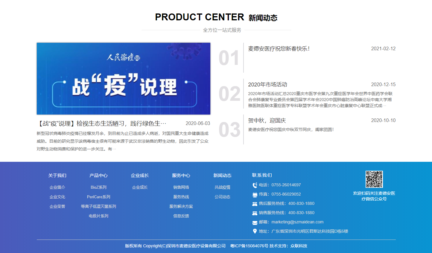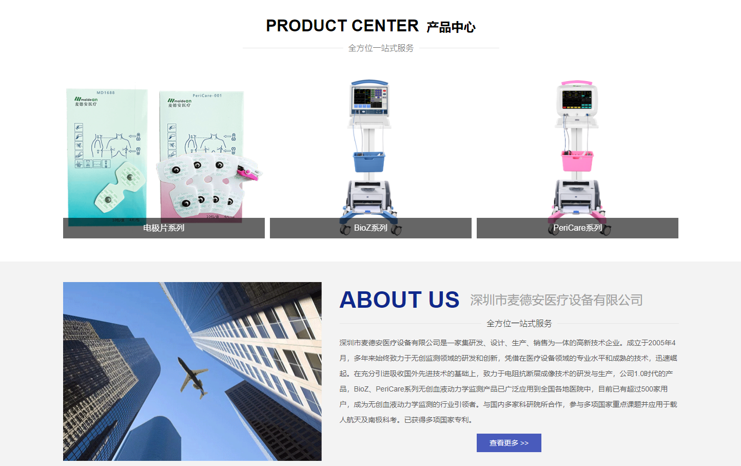 深圳市麦德安医疗设备有限公司是一家集研发、设计、生产、销售为一体的高新技术企业。成立于2005年4月,多年来始终致力于无创监测领域的研发和创新,凭借在医疗设备领域的专业水平和成熟的技术,迅速崛起。在充分引进吸收国外先进技术的基础上,致力于电阻抗断层成像技术的研发与生产,公司1.0时代的产品,BioZ、PeriCare系列无创血液动力学监测产品已广泛应用到全国各地医院中,目前已有超过500家用户,成为无创血液动力学监测的行业引领者。与国内多家科研院所合作,参与多项国家重点课题并应用于载人航天及南极科考。已获得多项国家专利。